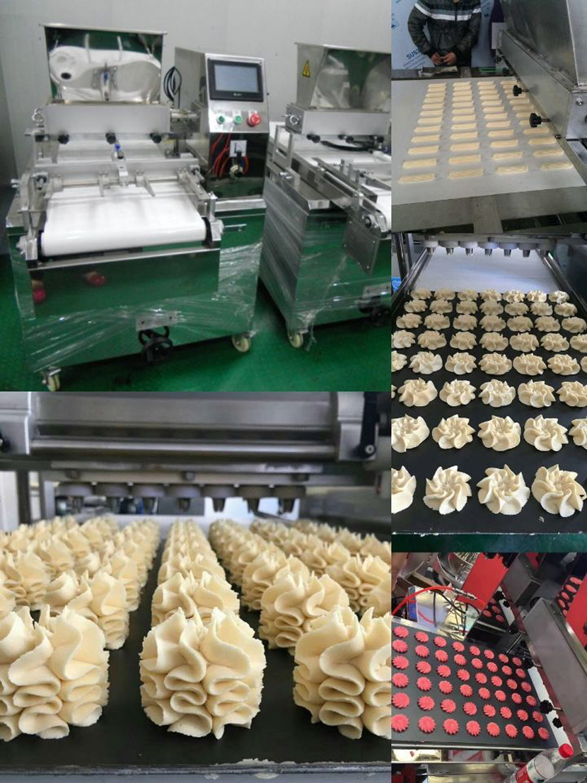 曲奇糕点机,是通过面团挤出成形,能生产多种独特花式点心和曲奇饼干坯的成形机,具有技术先进、结构紧凑、多功能、操作简单等特点,深受广大用户所欢迎,也是投资者目前市场最理想的新型仪器机械之一。该机具有多种模具,能生产几十种花式曲奇饼干,用户可根据需要自行调节选择。成形的花式点心与曲奇饼干,形态独特、花纹清晰、造型美观。该机生产的生坯采用热风旋转炉及隧道炉烘烤均可. |